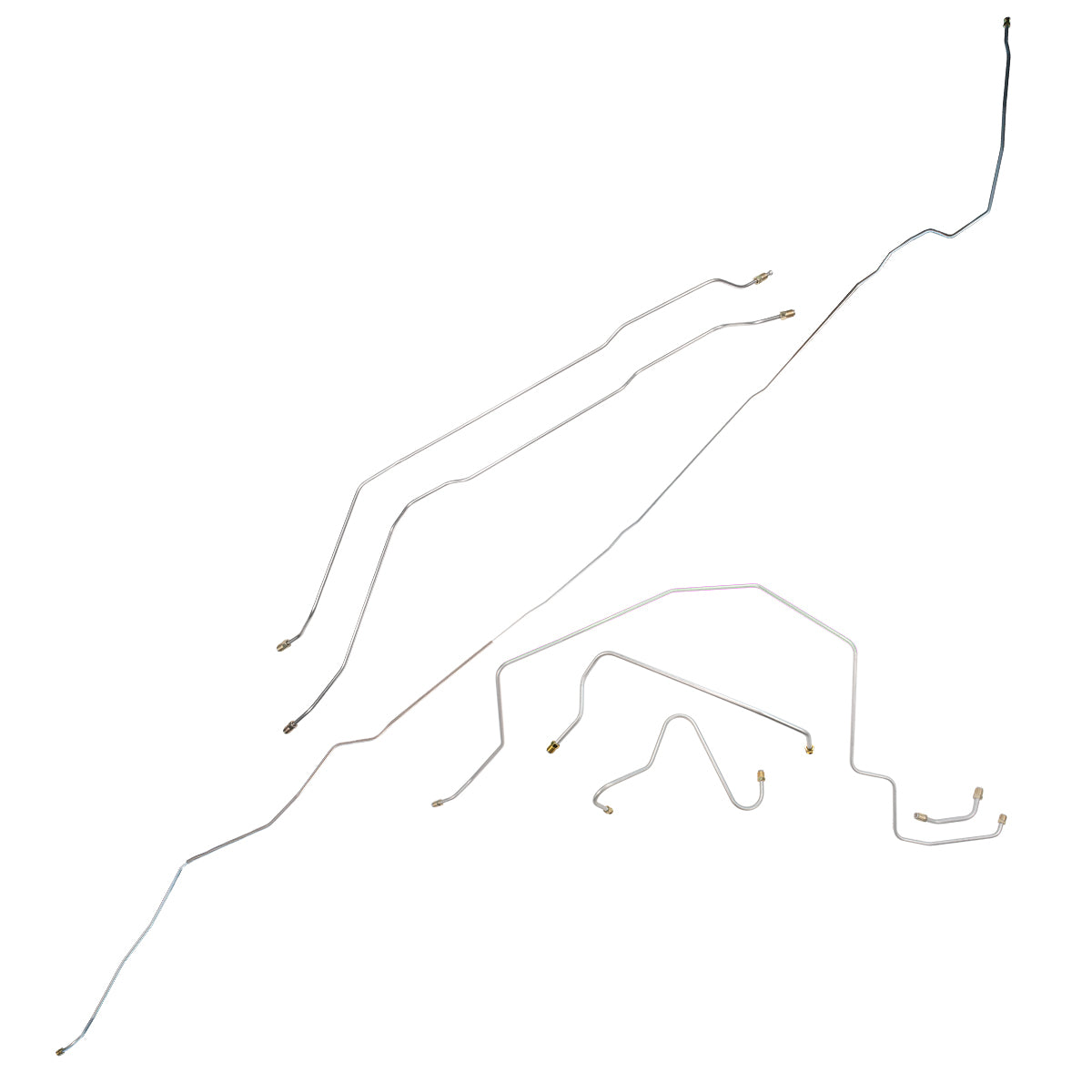 This preformed complete brake line kit will replace all the metal brake lines on your vehicle and includes the master cylinder lines, left front line and right-front crossover line, intermediate lines, and rear axle lines/trailing arm lines.