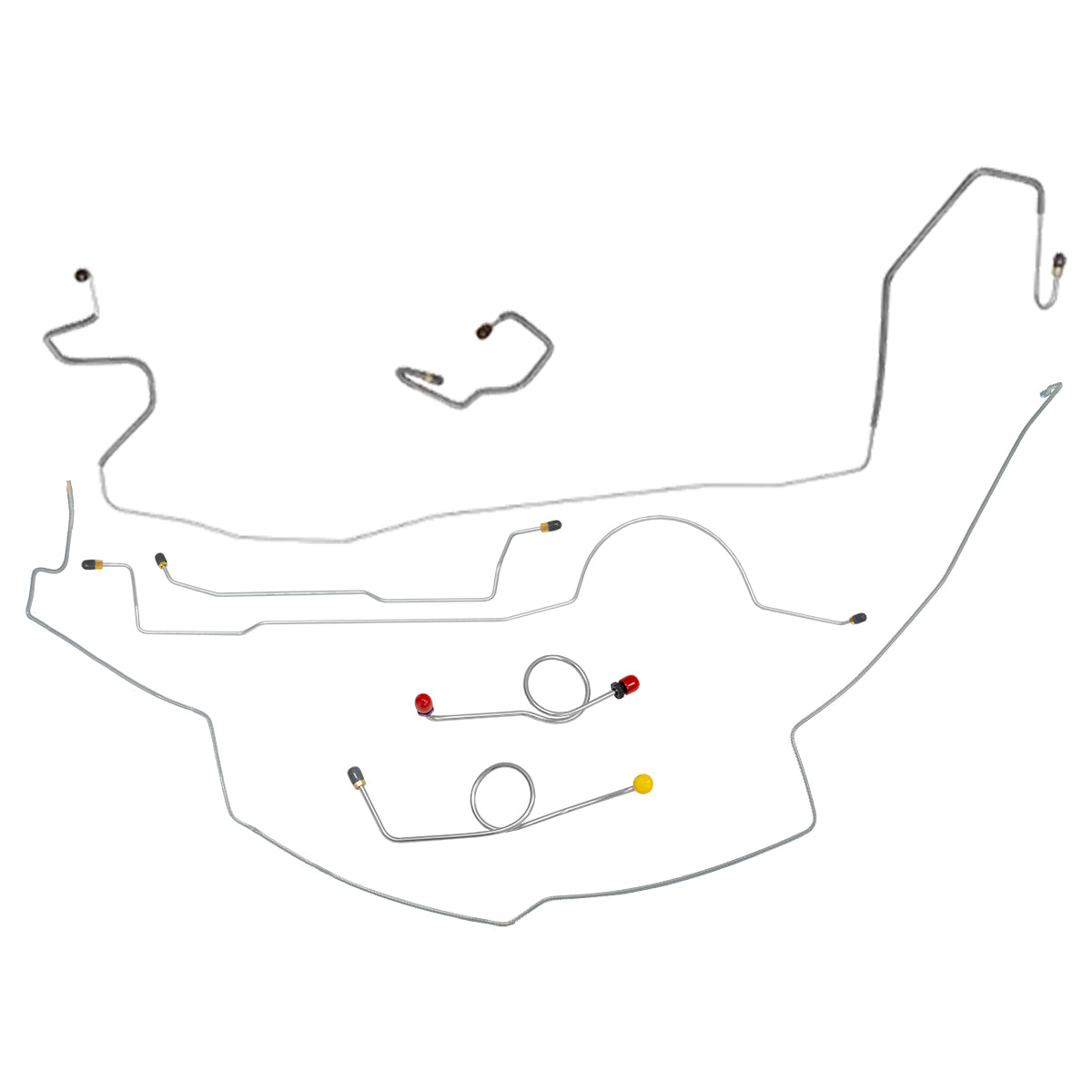 This preformed complete brake line kit will replace all the metal brake lines on your vehicle and includes the master cylinder lines, left front line and right front crossover line, intermediate lines, and rear axle lines/trailing arm lines.
