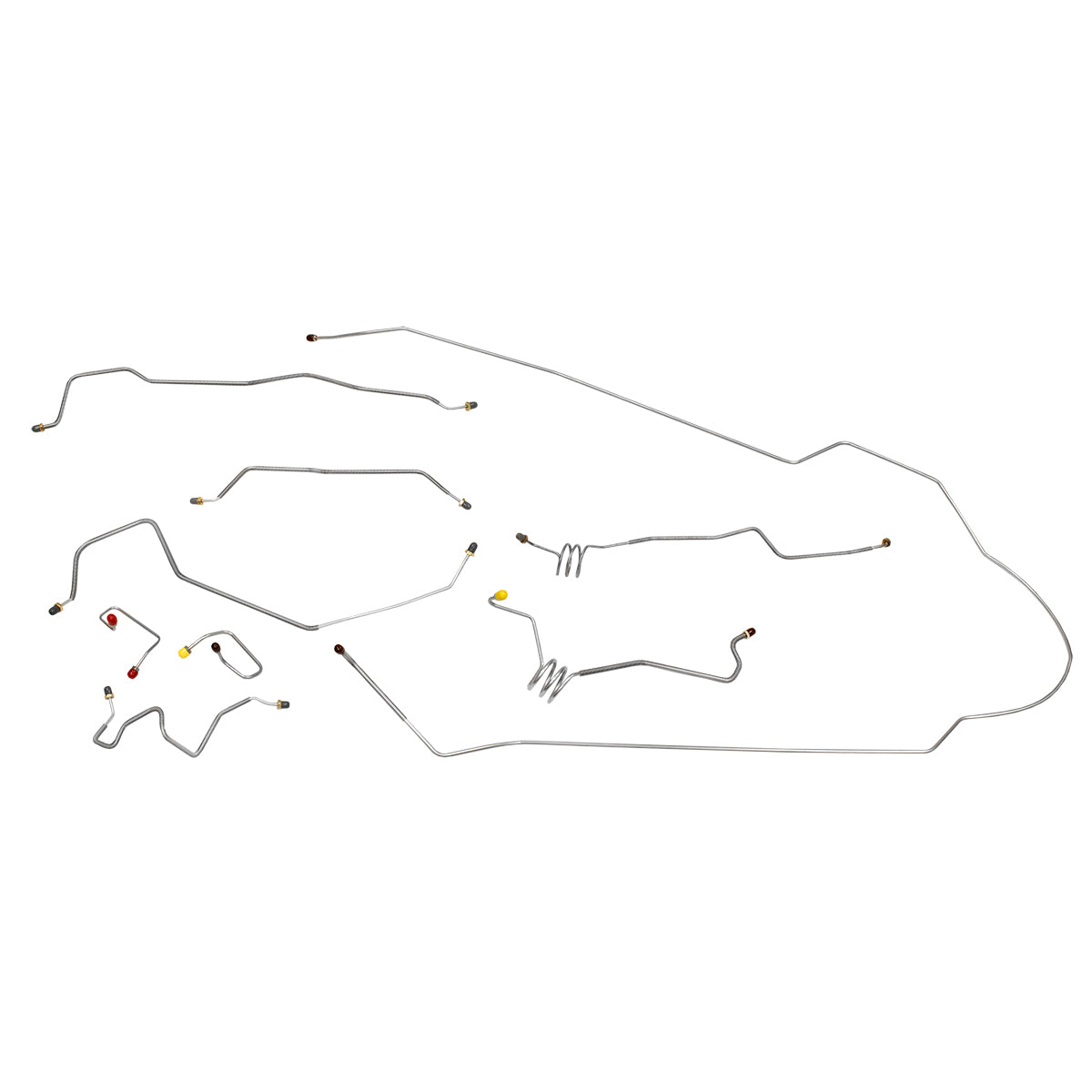 This preformed complete brake line kit will replace all the metal brake lines on your vehicle and includes the master cylinder lines, left front line and right front crossover line, intermediate lines, and rear axle lines/trailing arm lines.