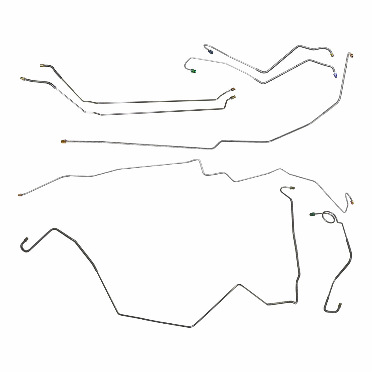 This preformed complete brake line kit will replace all the metal brake lines on your vehicle and includes the master cylinder lines, left front line and right front crossover line, intermediate lines, and rear axle lines/trailing arm lines.