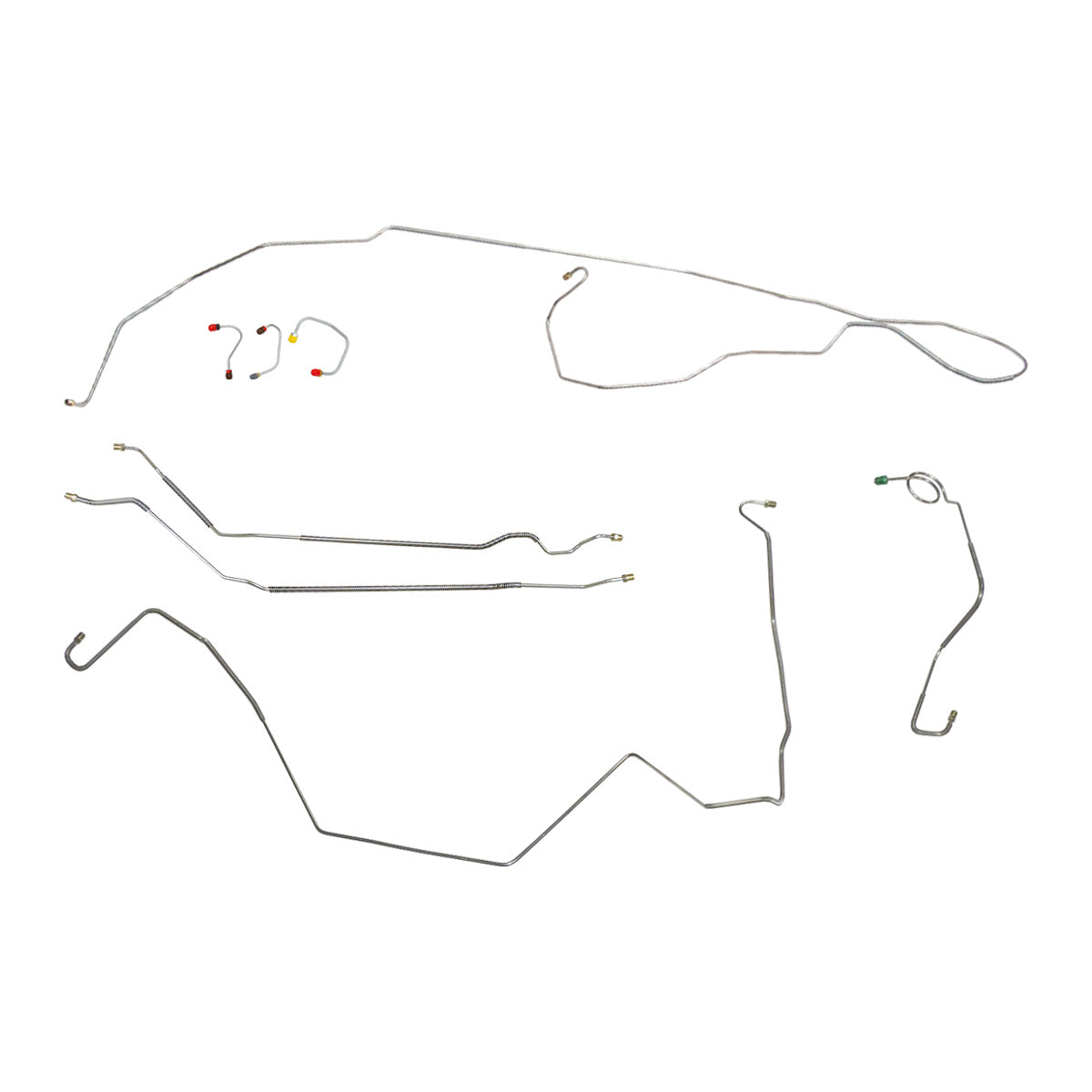 This preformed complete brake line kit will replace all the metal brake lines on your vehicle and includes the master cylinder lines, left front line and right front crossover line, intermediate lines, and rear axle lines/trailing arm lines.