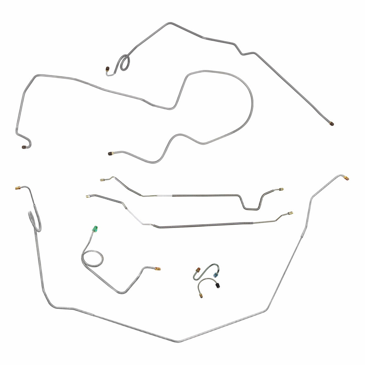 This preformed complete brake line kit will replace all the metal brake lines on your vehicle and includes the master cylinder lines, left front line and right-front crossover line, intermediate lines, and rear axle lines/trailing arm lines.
