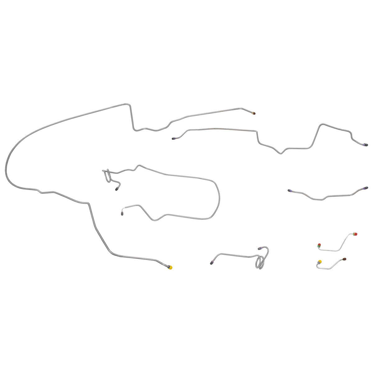 This preformed complete brake line kit will replace all the metal brake lines on your vehicle and includes the master cylinder lines, left front line and right front crossover line, intermediate lines, and rear axle lines/trailing arm lines.