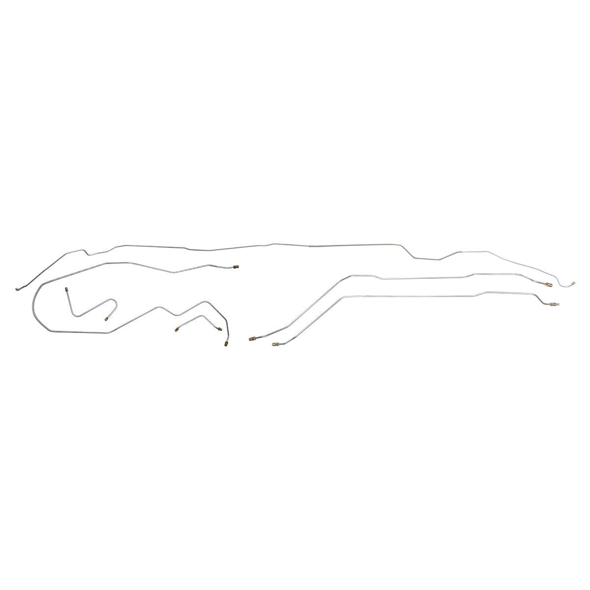 This preformed complete brake line kit will replace all the metal brake lines on your vehicle and includes the master cylinder lines, left front line and right-front crossover line, intermediate lines, and rear axle lines/trailing arm lines.