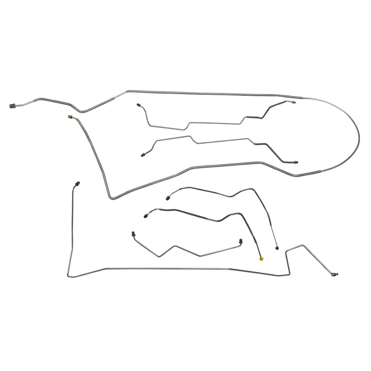 This preformed complete brake line kit will replace all the metal brake lines on your vehicle and includes the master cylinder lines, left front line and right front crossover line, intermediate lines, and rear axle lines/trailing arm lines.