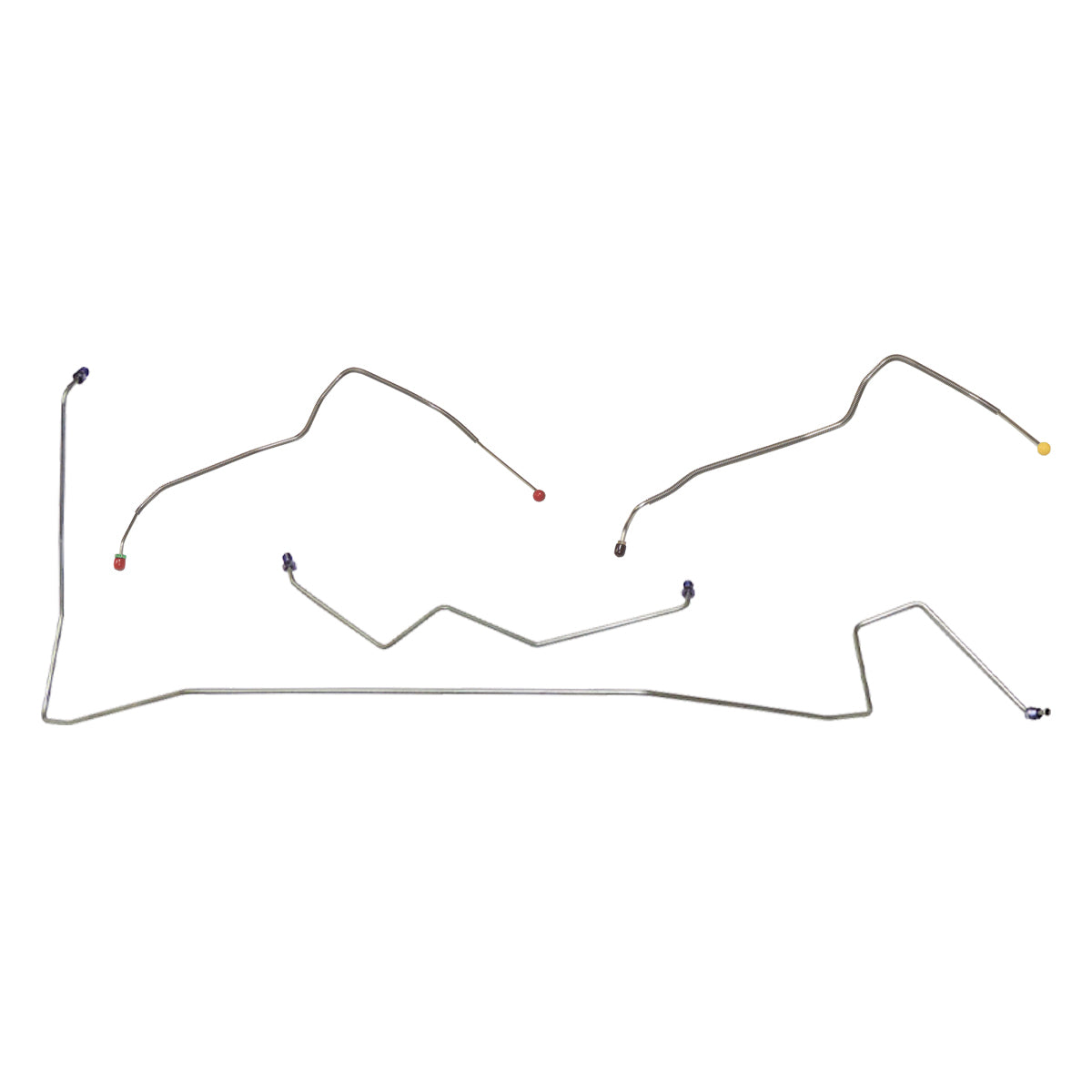 This preformed front brake line kit includes all the metal brake lines to supply the front two wheels of your vehicle and includes the master cylinder lines, left front line, and right front crossover line.