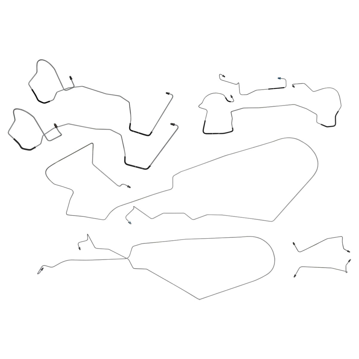 This preformed complete brake line kit will replace all the metal brake lines on your vehicle and includes the master cylinder lines, left front line and right front crossover line, intermediate lines, and rear axle lines/trailing arm lines.