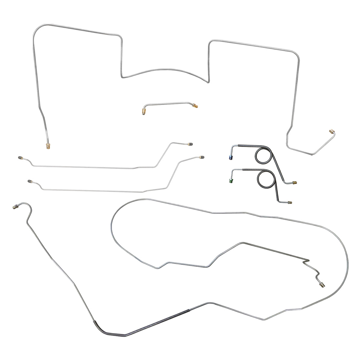 This preformed complete brake line kit will replace all the metal brake lines on your vehicle and includes the master cylinder lines, left front line and right-front crossover line, intermediate lines, and rear axle lines/trailing arm lines.