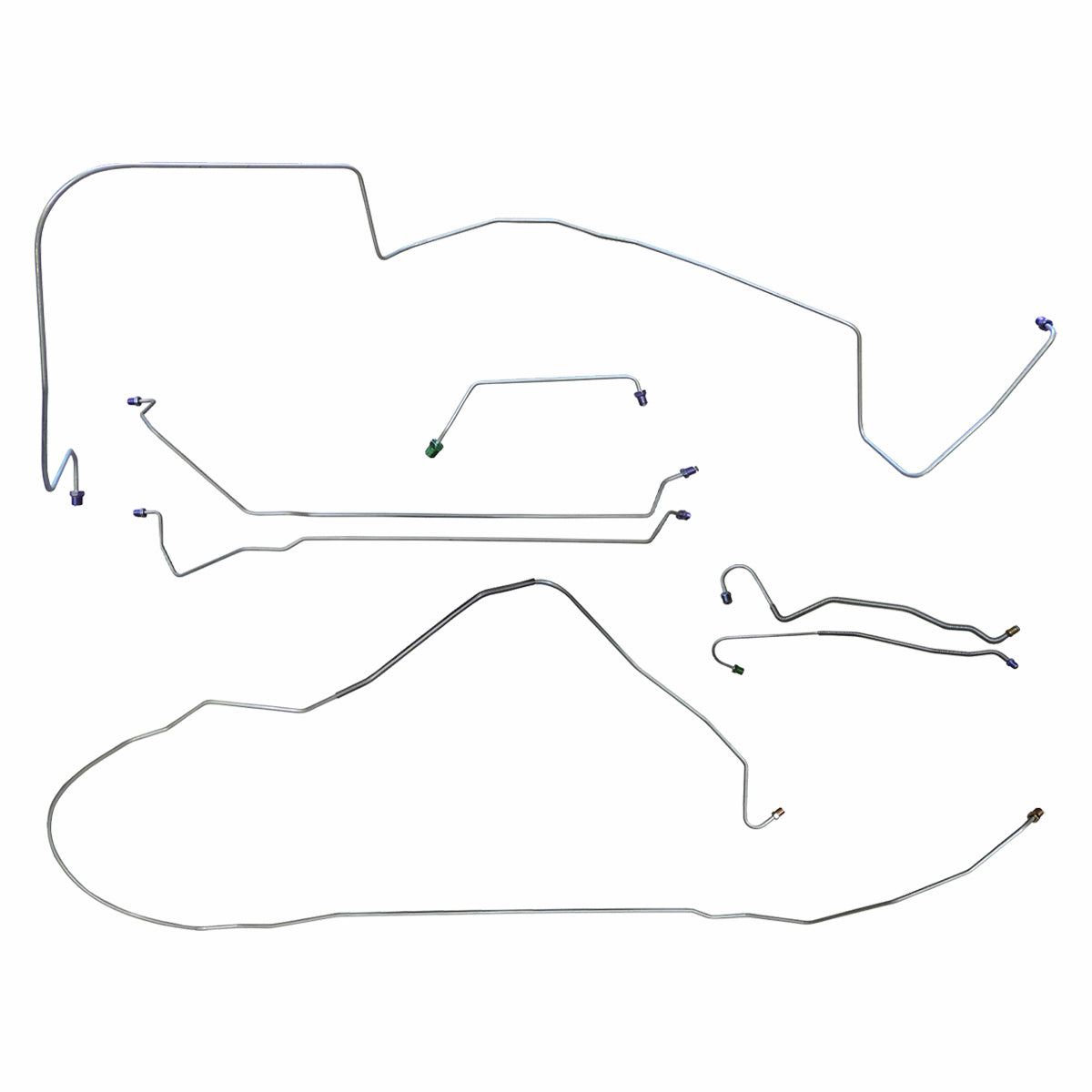 This preformed complete brake line kit will replace all the metal brake lines on your vehicle and includes the master cylinder lines, left front line and right-front crossover line, intermediate lines, and rear axle lines/trailing arm lines.