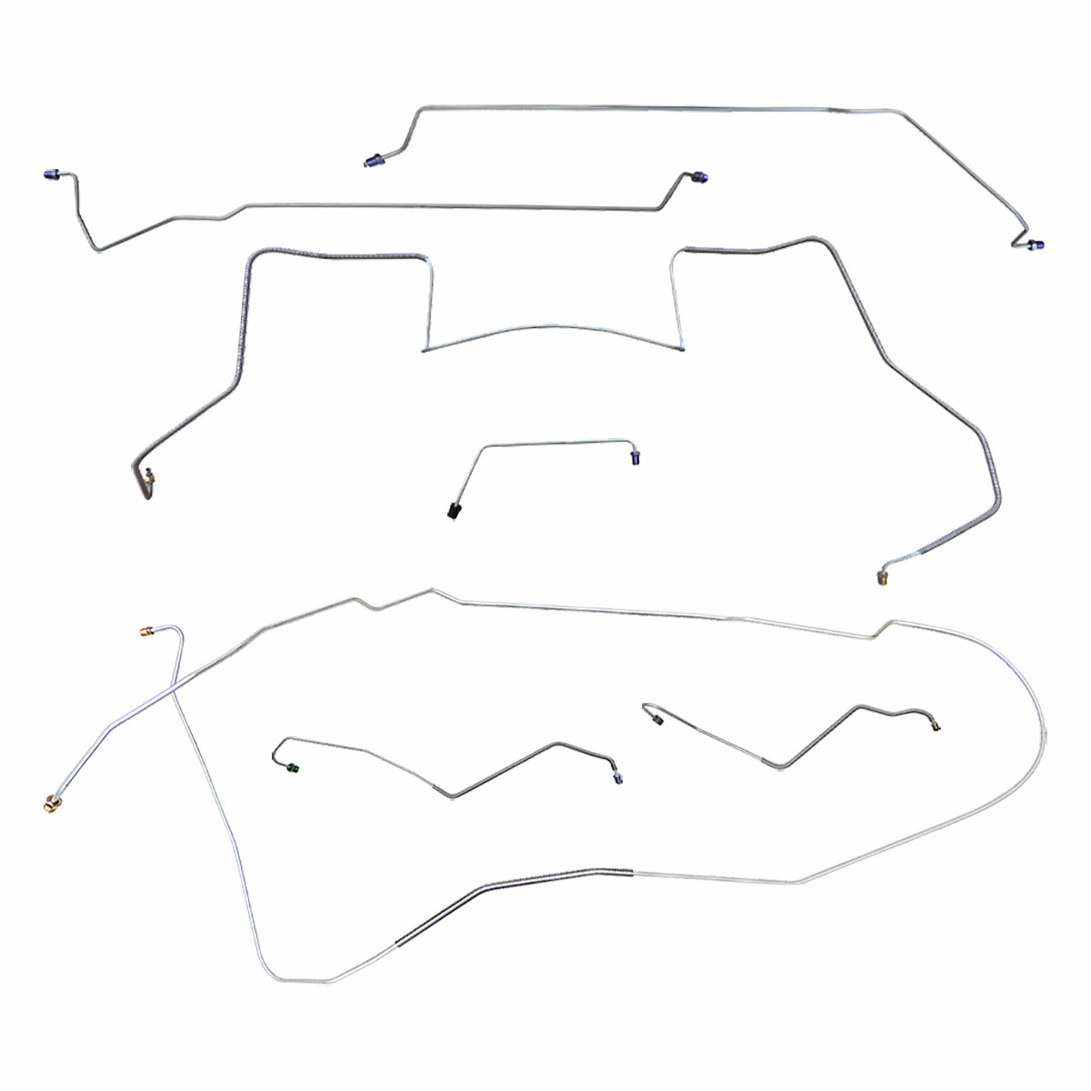 This preformed complete brake line kit will replace all the metal brake lines on your vehicle and includes the master cylinder lines, left front line and right-front crossover line, intermediate lines, and rear axle lines/trailing arm lines.
