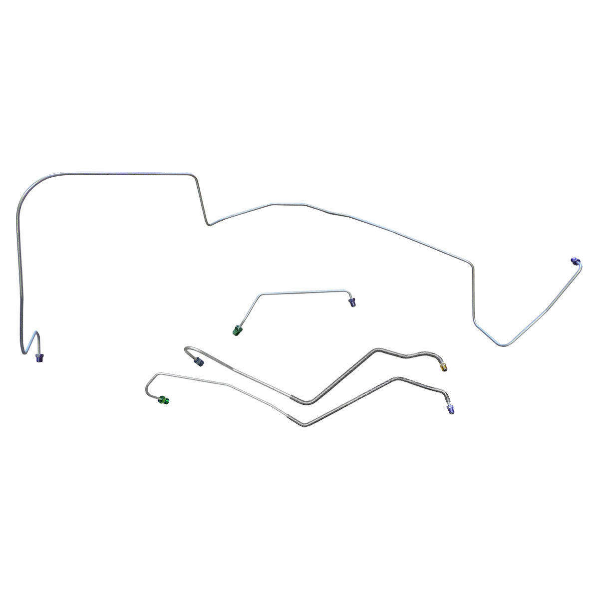 This preformed front brake line kit includes all the metal brake lines to supply the front two wheels of your vehicle and includes the master cylinder lines, left front line, and right front crossover line.
