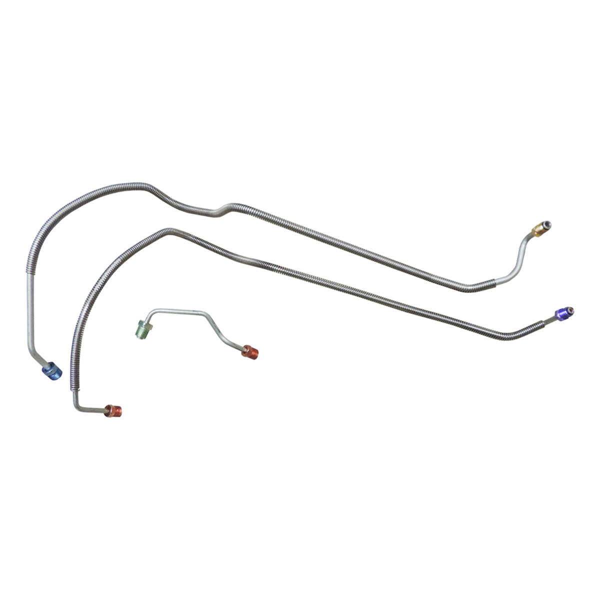 This preformed front brake line kit includes all the metal brake lines to supply the front two wheels of your vehicle and includes the master cylinder lines, left front line, and right front crossover line.