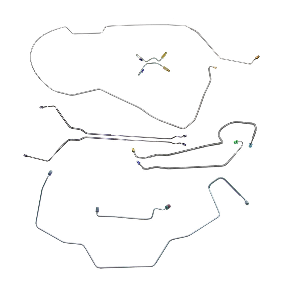 This preformed complete brake line kit will replace all the metal brake lines on your vehicle and includes the master cylinder lines, left front line and right-front crossover line, intermediate lines, and rear axle lines/trailing arm lines.