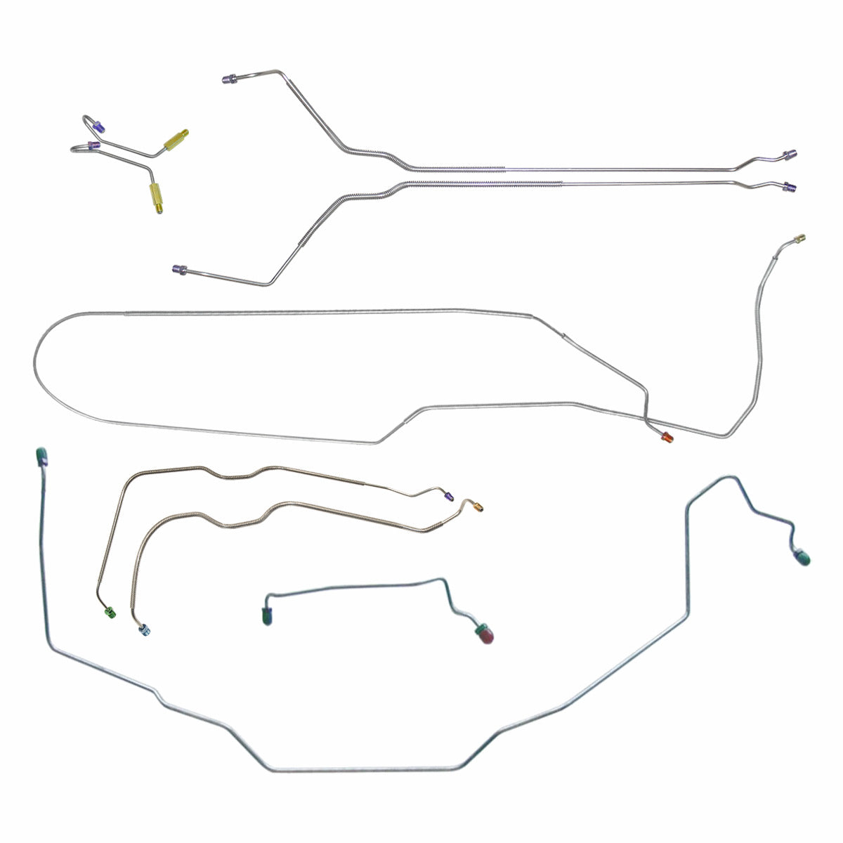 This preformed complete brake line kit will replace all the metal brake lines on your vehicle and includes the master cylinder lines, left front line and right-front crossover line, intermediate lines, and rear axle lines/trailing arm lines.