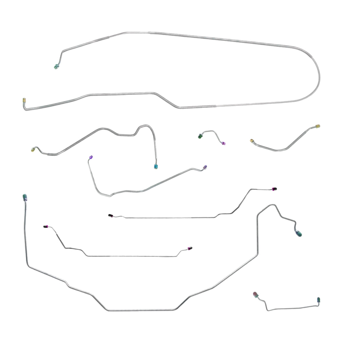This preformed complete brake line kit will replace all the metal brake lines on your vehicle and includes the master cylinder lines, left front line and right front crossover line, intermediate lines, and rear axle lines/trailing arm lines.