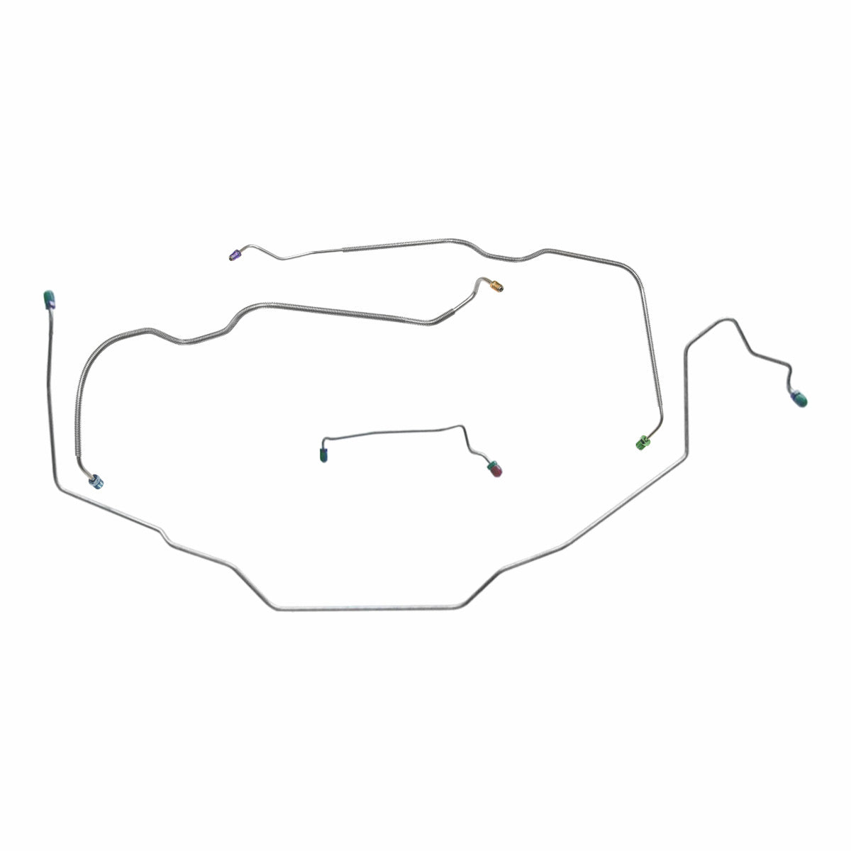 This preformed front brake line kit includes all the metal brake lines to supply the front two wheels of your vehicle and includes the master cylinder lines, left front line, and right front crossover line.
