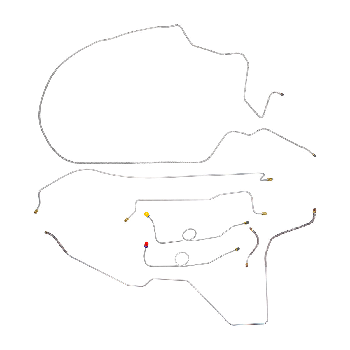This preformed complete brake line kit will replace all the metal brake lines on your vehicle and includes the master cylinder lines, left front line and right-front crossover line, intermediate lines, and rear axle lines/trailing arm lines.