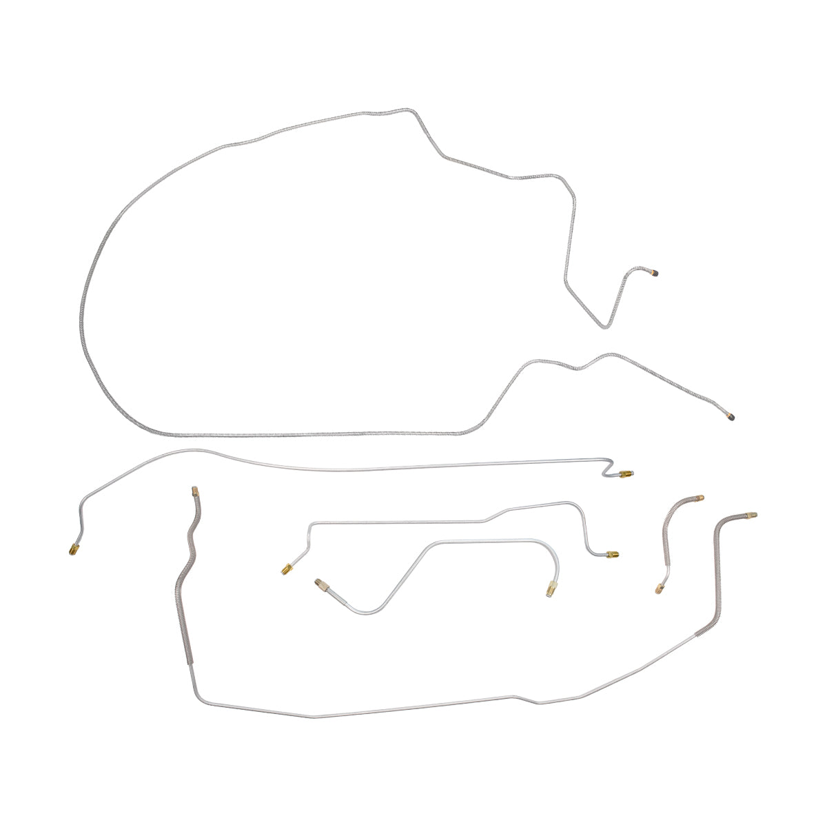 This preformed complete brake line kit will replace all the metal brake lines on your vehicle and includes the master cylinder lines, left front line and right-front crossover line, intermediate lines, and rear axle lines/trailing arm lines.