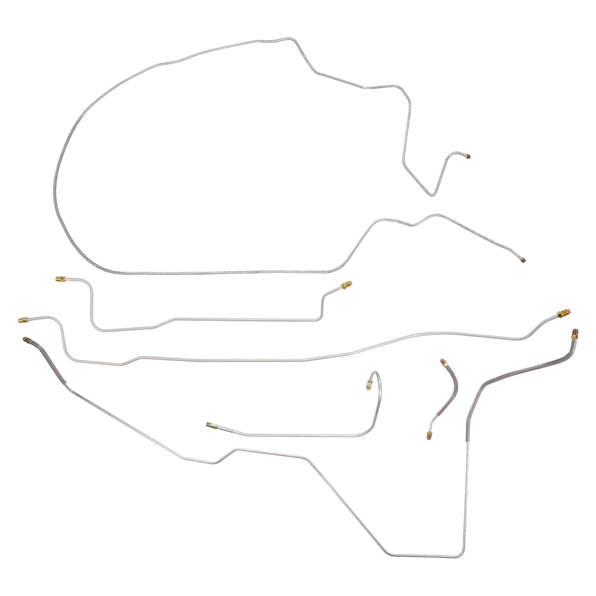 This preformed complete brake line kit will replace all the metal brake lines on your vehicle and includes the master cylinder lines, left front line and right-front crossover line, intermediate lines, and rear axle lines/trailing arm lines.