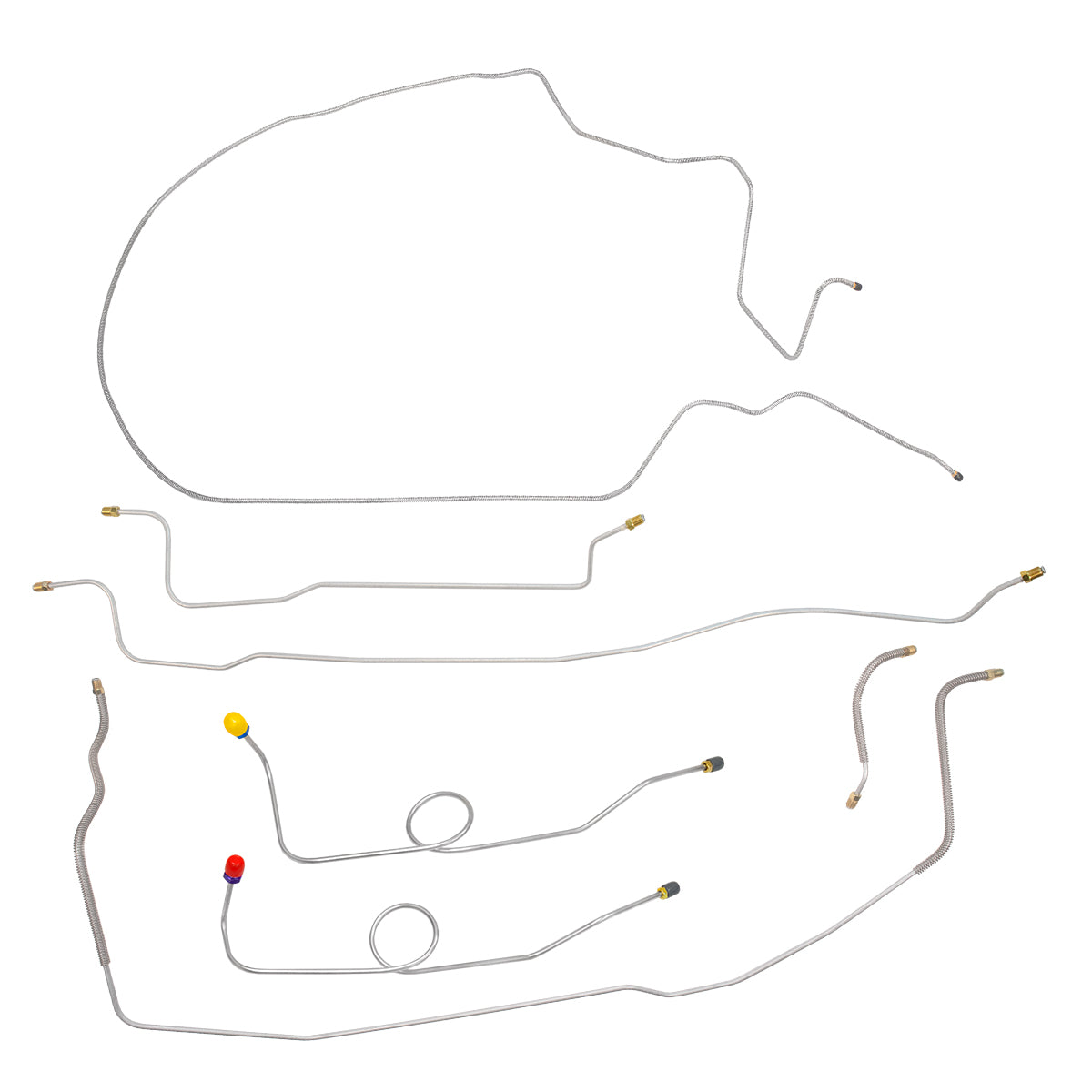 This preformed complete brake line kit will replace all the metal brake lines on your vehicle and includes the master cylinder lines, left front line and right-front crossover line, intermediate lines, and rear axle lines/trailing arm lines.