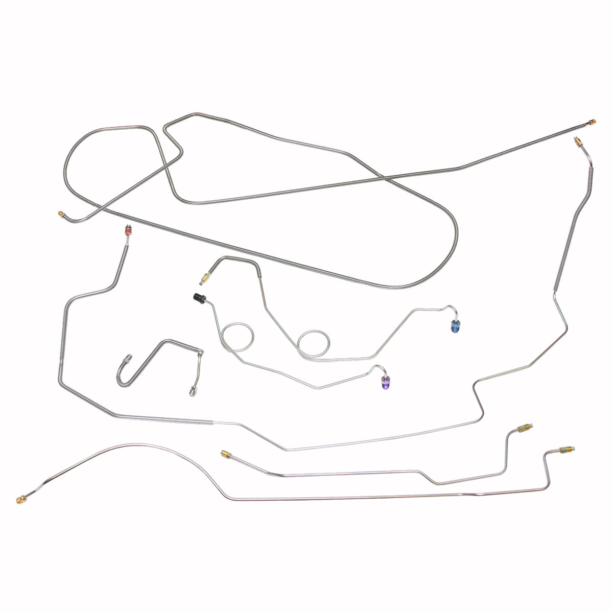 This preformed complete brake line kit will replace all the metal brake lines on your vehicle and includes the master cylinder lines, left front line and right-front crossover line, intermediate lines, and rear axle lines/trailing arm lines.