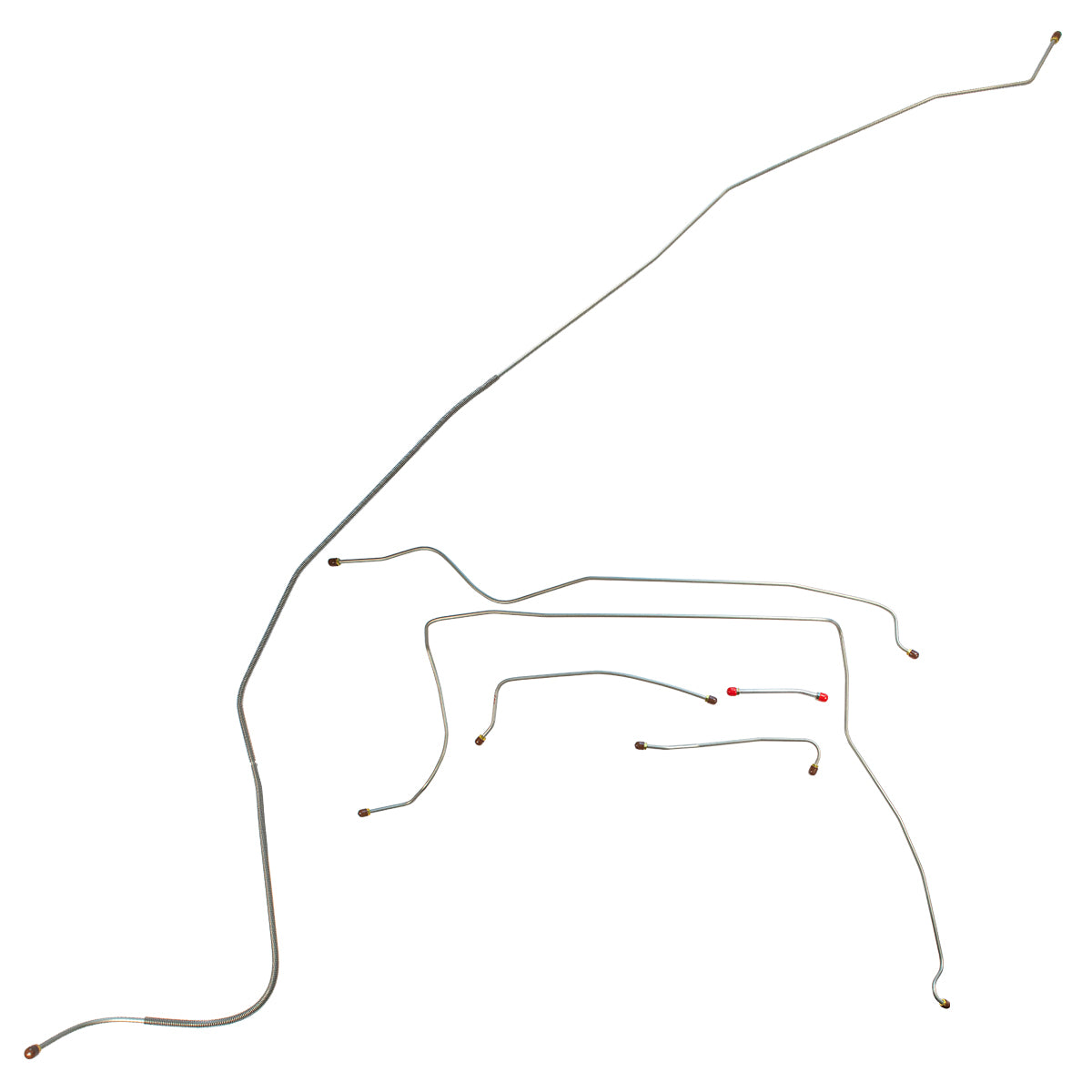 This preformed complete brake line kit will replace all the metal brake lines on your vehicle and includes the master cylinder lines, left front line and right-front crossover line, intermediate lines, and rear axle lines/trailing arm lines.