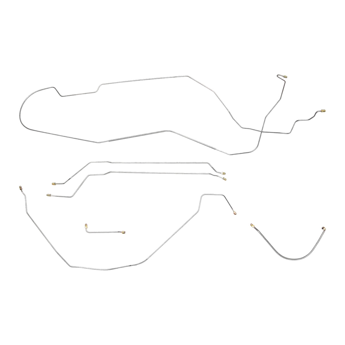 This preformed complete brake line kit will replace all the metal brake lines on your vehicle and includes the master cylinder lines, left front line and right-front crossover line, intermediate lines, and rear axle lines/trailing arm lines.