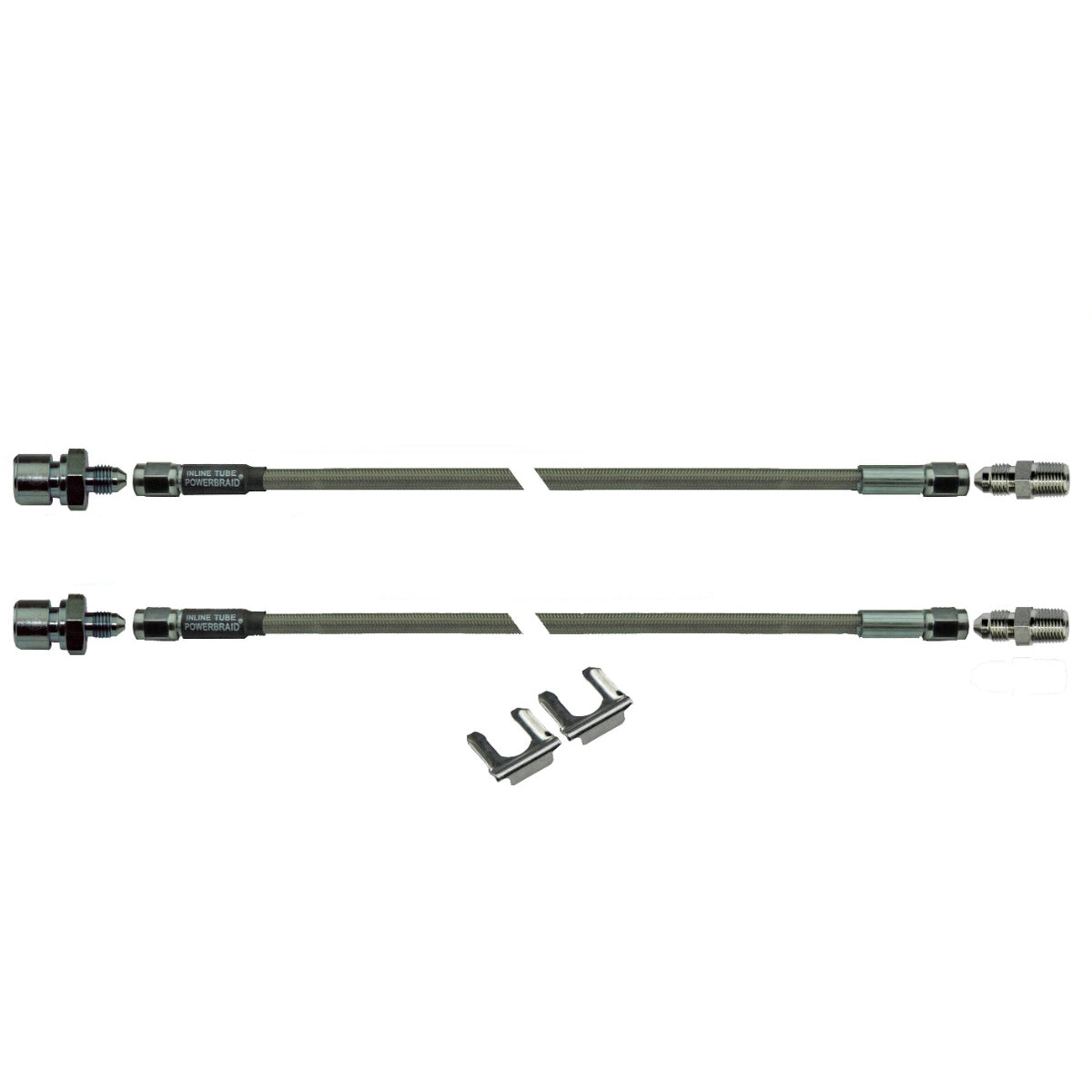 This kit includes two 21” hoses each with a 3/8-24” female end and a 1/8” pipe thread male end for a 24” overall length. The kit ships with hose clips.