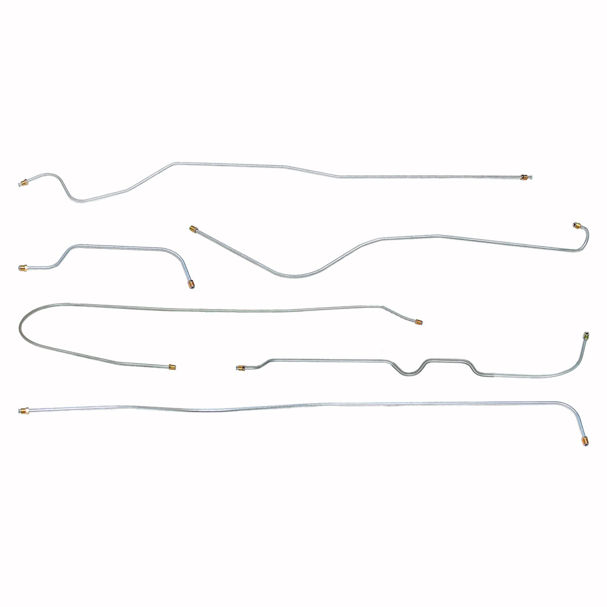 This preformed complete brake line kit will replace all the metal brake lines on your vehicle and includes the master cylinder lines, left front line and right-front crossover line, intermediate lines, and rear axle lines/trailing arm lines.