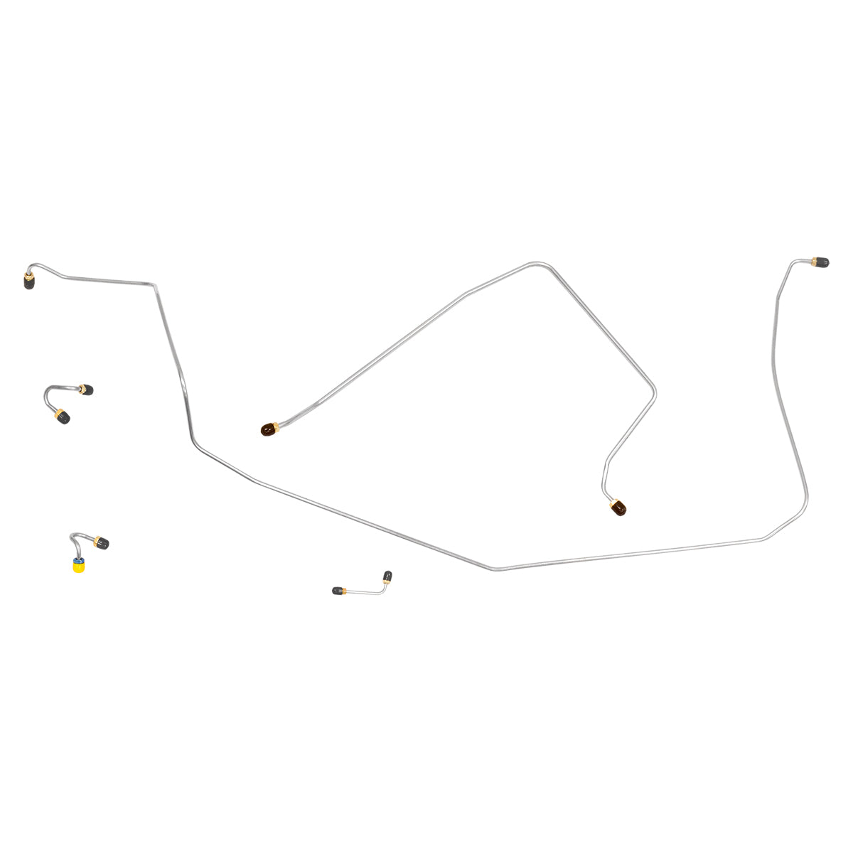 This preformed front brake line kit includes all the metal brake lines to supply the front two wheels of your vehicle and includes the master cylinder lines, left front line, and right front crossover line.
